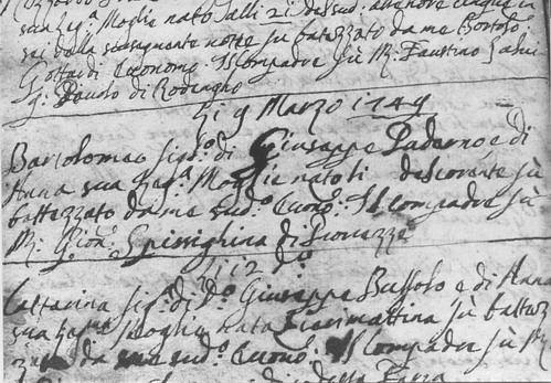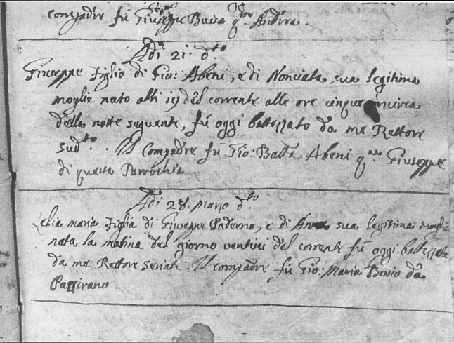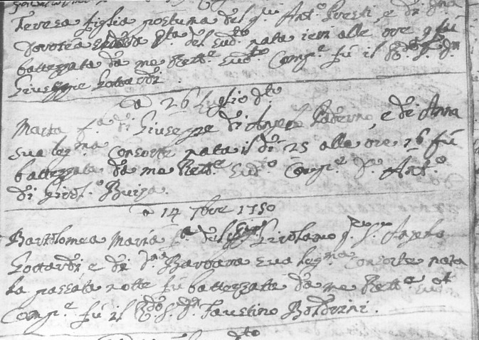 Lelia Maria nata il 25 marzo 1764, compare Giò Maria