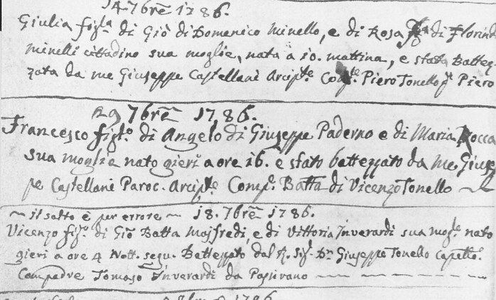 Giulia Minelli invece nel 1786 Francesco; Anna nel 1790;