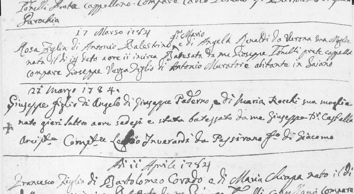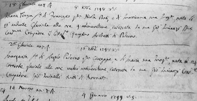 Verzelletti nel 1791 Anna Maria; 1795 Giuseppe; 1798 Anna;