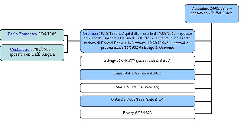Costantino prosegue con Giovanni, nato a Ospitaletto e sposato a Calino, emigrato a Borgo San Giacomo e ritornato a Bornato nel 1932 dove aveva gi avuto due figli: Paolo Francesco e Costantino.