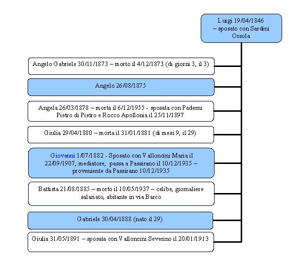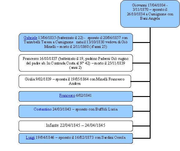 Giovanni di Gabriele continua sicuramente con due figli: Costantino e Luigi. Gabriele si sposa, ma muore a 25 anni nel 1860, un anno dopo la morte del figliolo Giovanni Battista.
