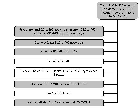 Pietro e' contadino mezzadro ed abita in Via Basso Castello. Sposa Angelina Paderni il 25 novembre 1897. Enrico Battista muore a Bornato nel 1971.