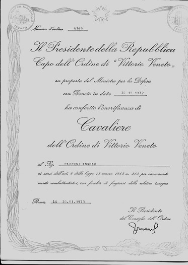 dell'Ordine di Vittorio Veneto, onoreficenza al merito per "...