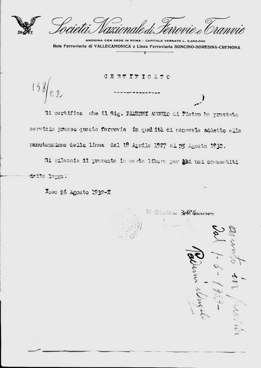 eseguiva lavori ferroviari per la Societa' Nazionale