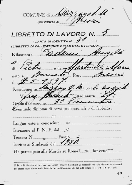 elementare e nel 1930 si era iscritto ai sindacati e non