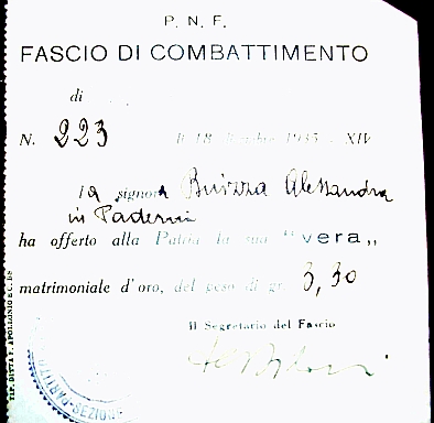 Nel 1936, XV anno dell'era fascista, gli viene rilasciato